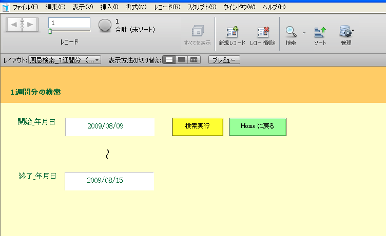 1.調べたい週の開始日(日曜日から)を入力します。※終了日は自動で入力されます。